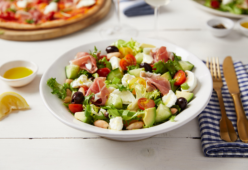 These include Gamberoni Spirali, a dish under 300 calories with spiralised carrot, golden beetroot and courgette with king prawns in a spicy garlic and tomato sauce; and three new salads, all under 600 calories, called Giardiniera, di Verona and Parma Bufala, to name a few.