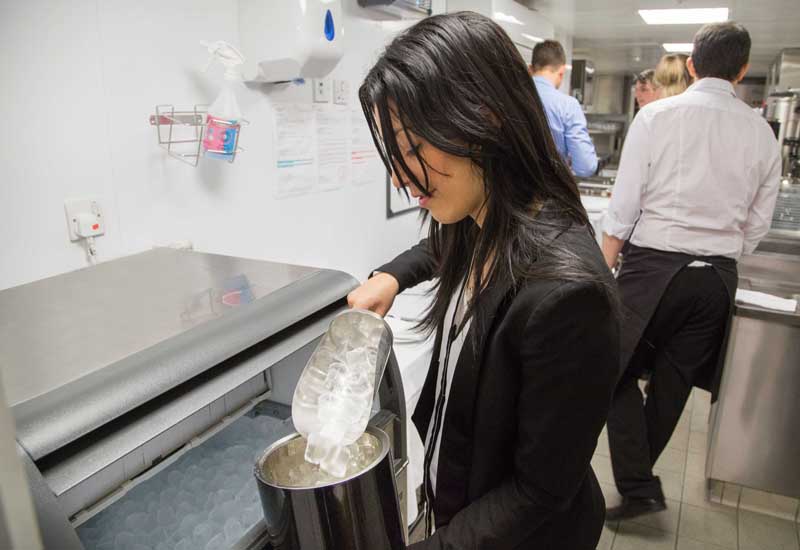 1) Establishments such as pubs will typically have icemakers with air-cooled condensers, which means they’ll have an air filter. This needs cleaning. If it gets clogged with dust it will make the icemaker less efficient, so you’ll get less ice.