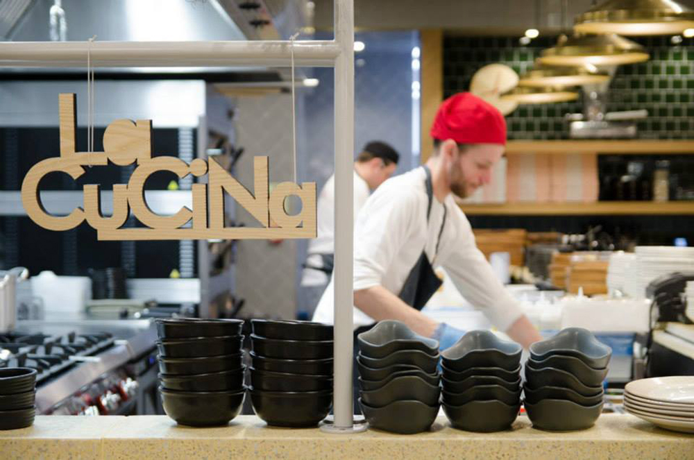 The flow of the kitchen has been central to the new design, says Holmes. “We know exactly what size to build, what the optimum space is and we have also considered things like the optimum number of chefs needed to produce the menu and which dish goes in which section of the kitchen. We have three sections — the salad section, pizza section and a pasta section — and we make sure the menu is engineered so that there is an even workload across all three.